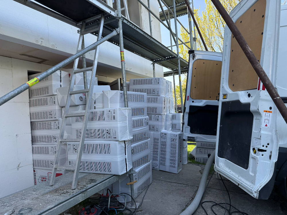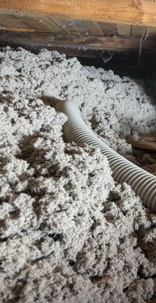 Jednalo se velmi náročnou zakázku, kde byla tzv. dvojplášťová střecha. Prostory byly velmi stístněné od 25 cm do 80cm výšky půdního prostotu. Foukáno bylo na tl. 46 cm prakticky po celou dobu v leže za špatných klimatických podmínek.